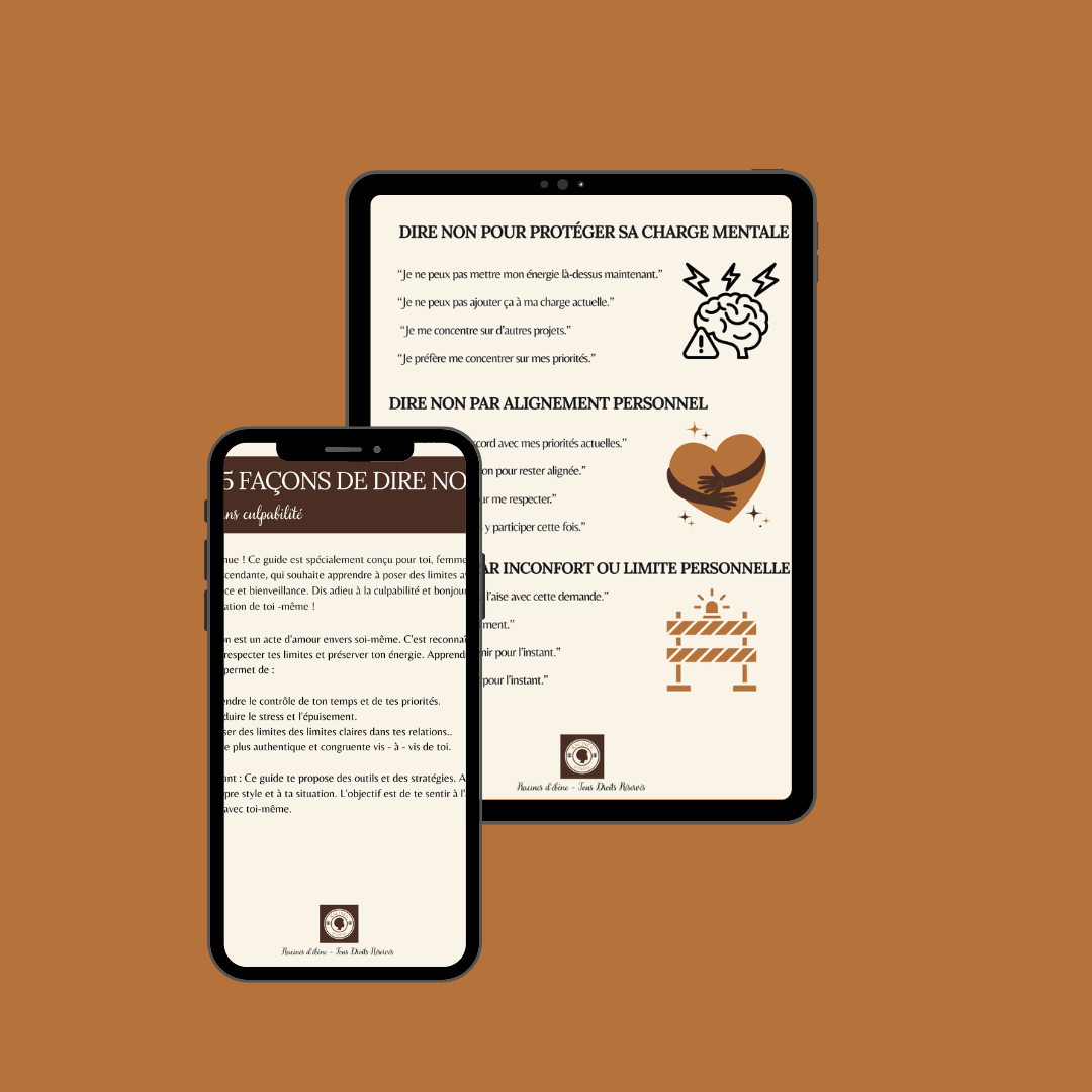 Tu y trouveras 25 phrases prêtes à l’emploi, respectueuses et fermes, qui t’aident à dire non sans culpabiliser, sans t’expliquer pendant 10 ans et sans te renier.