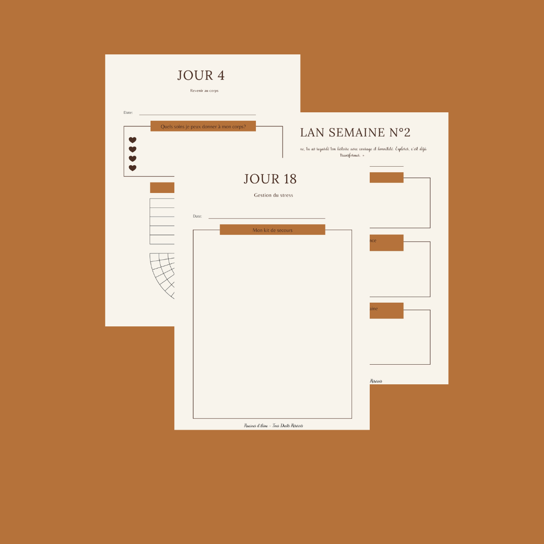 Les thèmes avancent dans un ordre logique : racines, corps, blessures, résilience, limites, identité, projection. Résultat : tu ne t’éparpilles pas, tu reconnectes toutes les parties de toi.